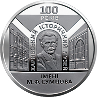 Данная монета посвящена вековому юбилею одному из наибольших музеев Украины. Харьковский исторический музей имени Н.Ф. Сумцова — один из крупнейших музеев Украины с давней историей, ведущий культурный центр Слобожанщины и Восточной Украины, областной научно-методический музейный центр.