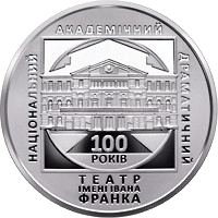 На реверсе монет размещена композиция, стилизованная под логотип театра: в квадратной рамке на зеркальном фоне — рельефное изображение здания театра; на матовом фоне — надписи 100 лет (под зданием), НАЦІОНАЛЬНЫЙ (вертикально слева), АКАДЕМІЧНИЙ (вверху), ДРАМАТИЧНИЙ (вертикально справа), ТЕАТР ІМЕНІ ІВАНА ФРАНКА (внизу).