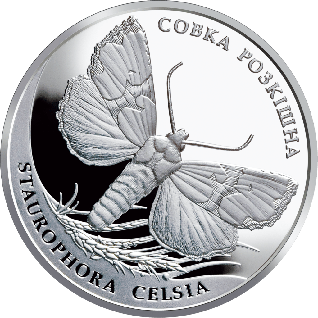 Монета Украины «Совка роскошная» входит в серию «Флора и фауна» и выпущена в обиход 2 июня 2020 года в двух номиналах — 2 и 10 гривен.