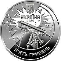 На аверсе монеты на фоне стилизованного звездного неба разместились: малый Государственный Герб Украины (вверху), под которым надпись «УКРАЇНА 2021»; в центре на зеркальном фоне — телескоп обсерватории Львовского университета; номинал «П`ЯТЬ ГРИВЕНЬ» показан внизу полукругом; логотип Банкнотно-монетного двора НБУ находится справа от телескопа.