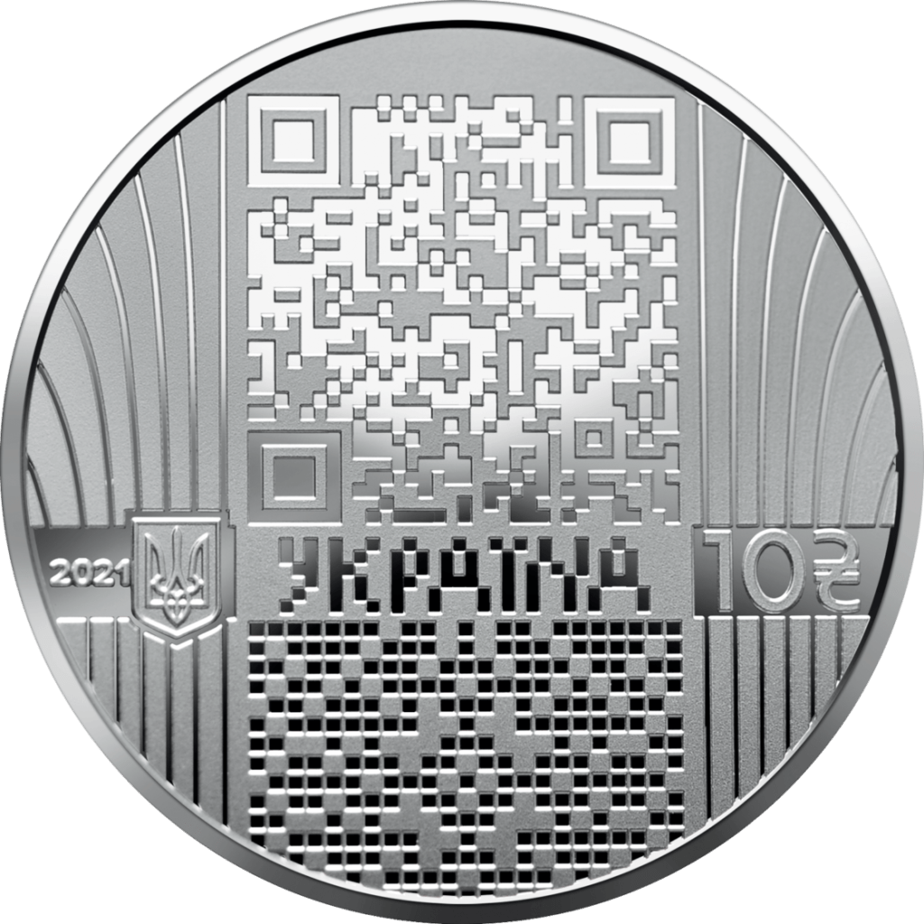 На аверсе монеты размещены: надпись УКРАИНА, слева от которого — год чеканки монеты — 2021 и малый Государственный Герб Украины; композиция, являющаяся своеобразным носителем информации и объединяет прошлое и настоящее: вверху — QR-код как символ цифровой трансформации общества и экономики, внизу — стилизованное изображение элементов вышивки — сокровищницы символов, в которых отражаются обычаи, обряды, верования украинского народа, номинал — 10 и графический символ гривны (справа от надписи Украина).