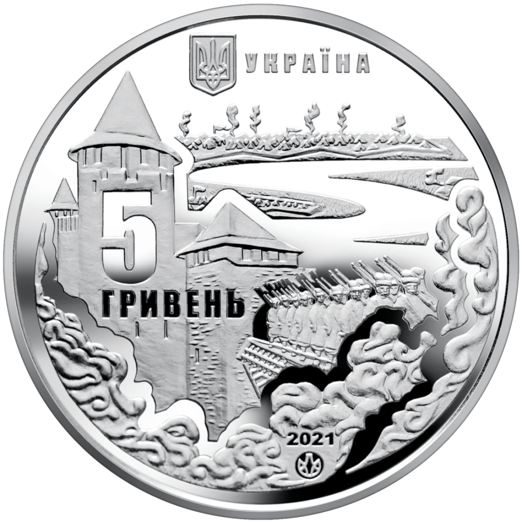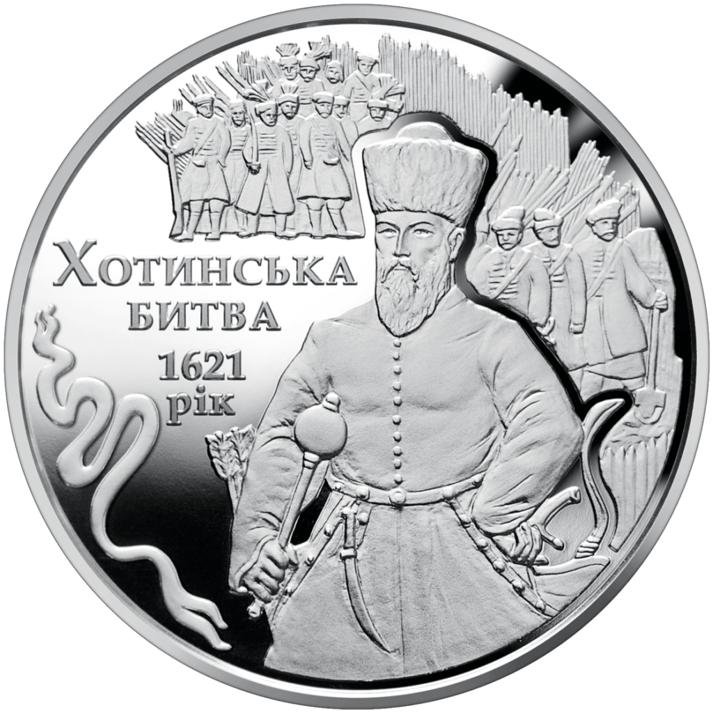 Монета Украины «Хотинская битва» входит в серию «Герои казацкой поры» и выпущена в обиход 29 октября 2021 года.