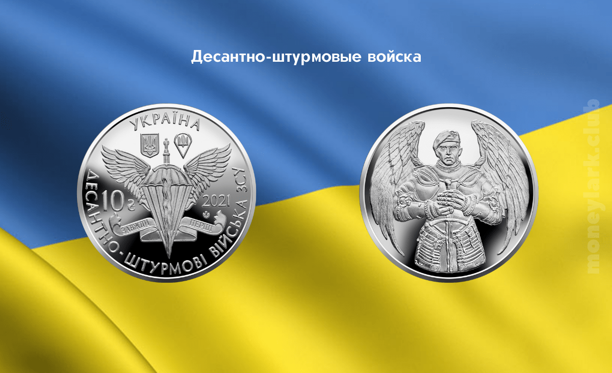 Монета Украины «Десантно-штурмовые войска Вооружённых сил Украины» входит в серию «Вооружённые силы Украины» и выпущена в обиход 11 ноября 2021 года.