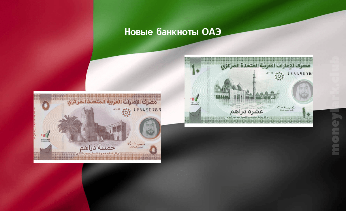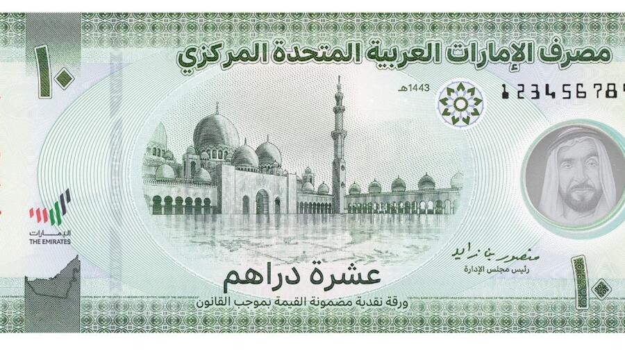 Центральный банк ОАЭ 21 апреля 2022 года объявил о выпуске двух новых банкнот достоинством в пять и десять дирхамов, изготовленных из полимера и усовершенствованных техническими характеристиками и элементами защиты. Эти выпуски последовали за успехом первой полимерной банкноты в 50 дирхамов. Отличительными чертами этих двух банкнот являются прозрачное окно с портретом покойного отца-основателя и первого президента ОАЭ шейха Заида ибн Султана Аль Нахайяна и логотип национального бренда ОАЭ с флуоресцентными рисунками и надписями, выполненными с использованием передовых технологий глубокой печати.