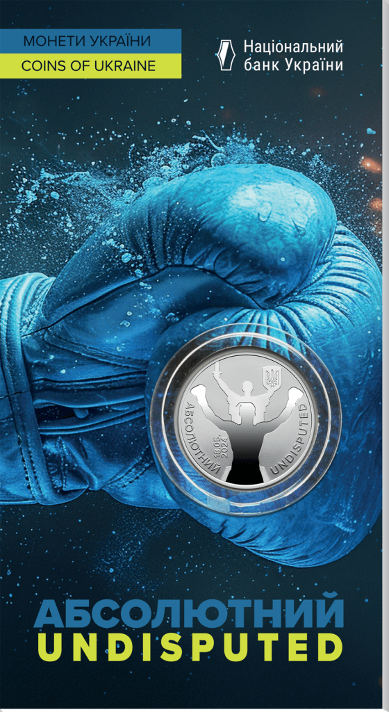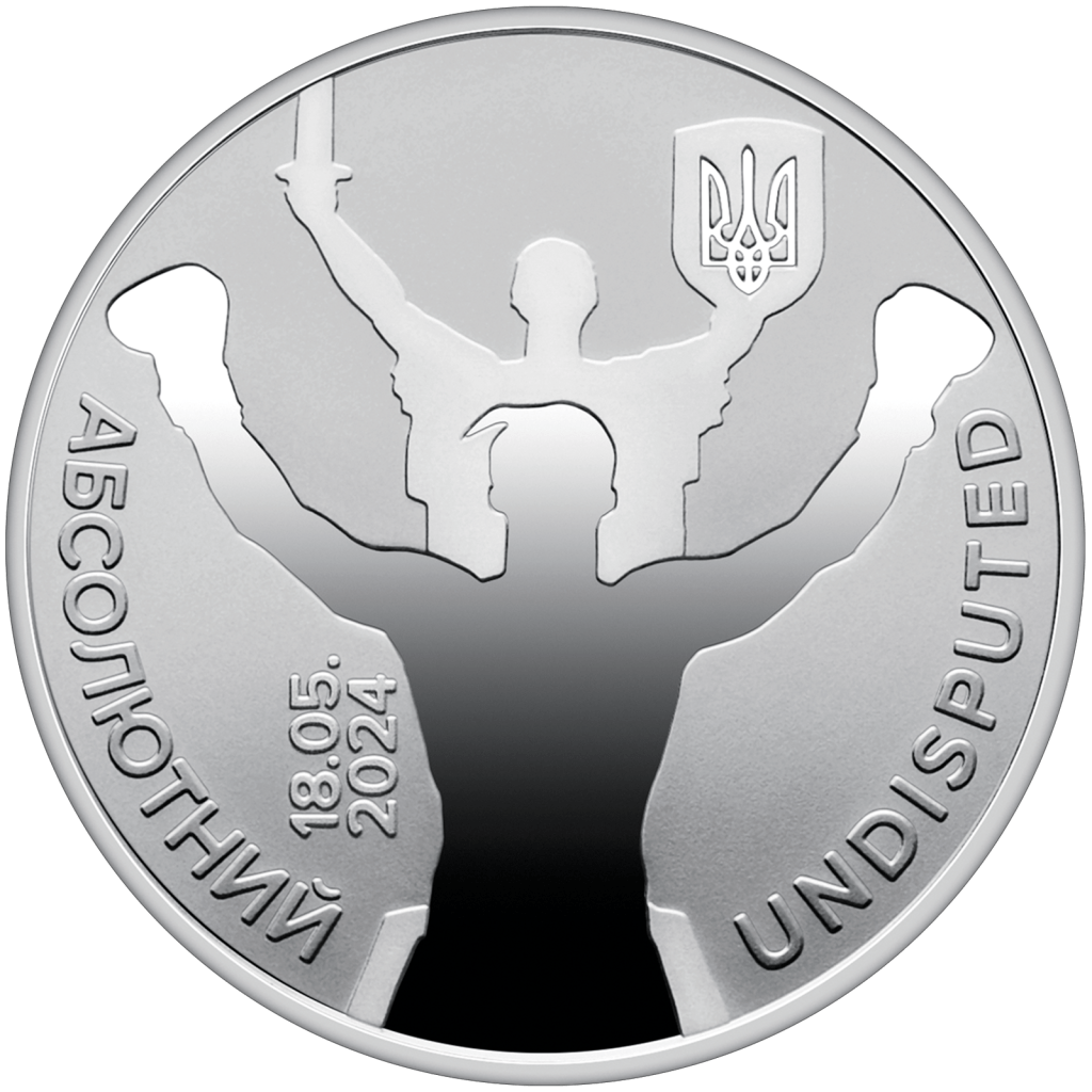 На реверсе монеты в центре композиции изображен стилизованный образ спортсмена на фоне абриса монумента «Родина-Мать» — символа несокрушимости и крепости украинского народа. Внизу слева и справа от силуэта чемпиона указаны надписи: 18.05.2024 (дата проведения боя), АБСОЛЮТНЫЙ и UNDISPUTED (титул, завоеванный спортсменом).