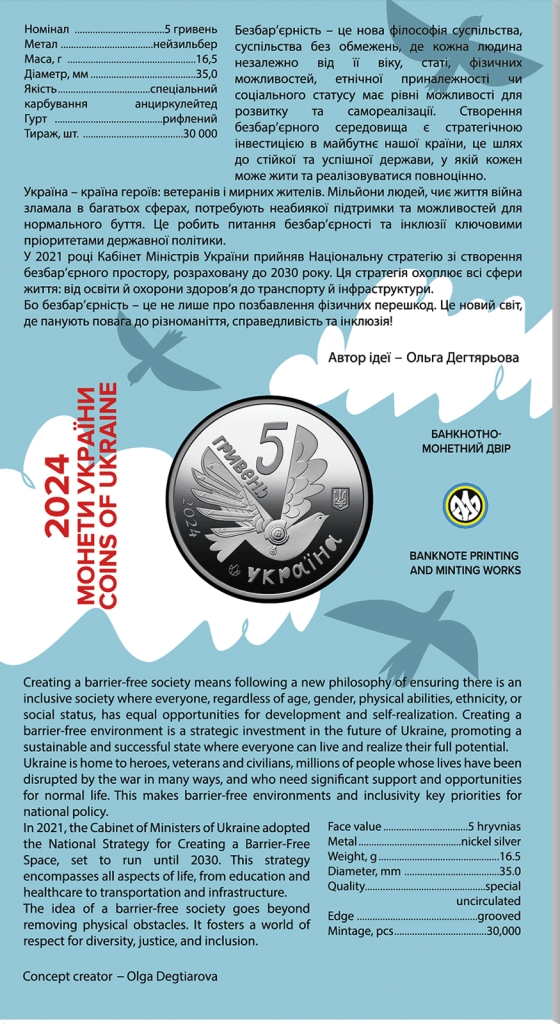 23 декабря 2024 года Национальный банк Украины представил монету «Безбарьерность», которая не вошла ни в одну из тематических серий.