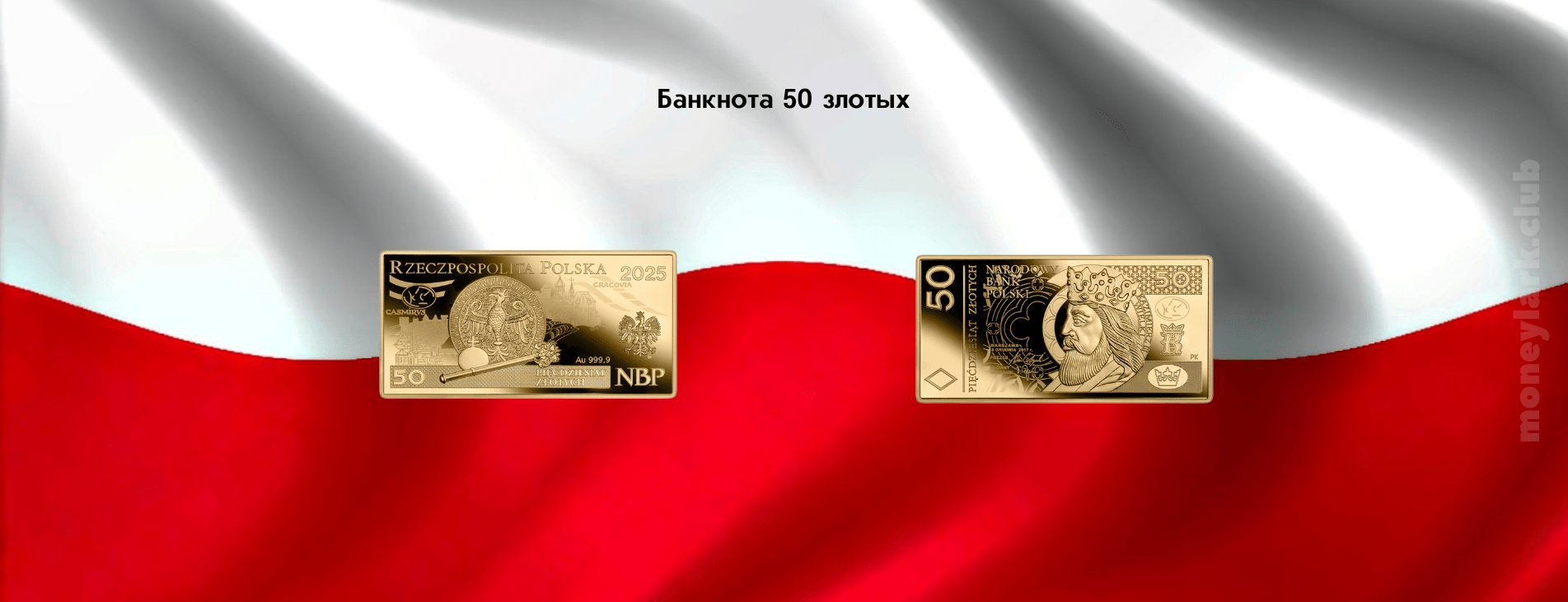 У Народного банка Польши есть оригинальная серия золотых монет «Польские обиходные банкноты», каждая из которых представляет собой стилизованное изображение современной банкноты. 6 марта 2025 года была представлена новая монета из этой серии «Банкнота 50 злотых».