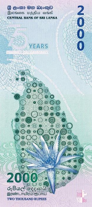 Центральный банк Шри-Ланки (CBSL) 28 августа 2025 года выпустил в обращение памятную банкноту номиналом 2000 рупий сегодня, в честь своего 75-летия.