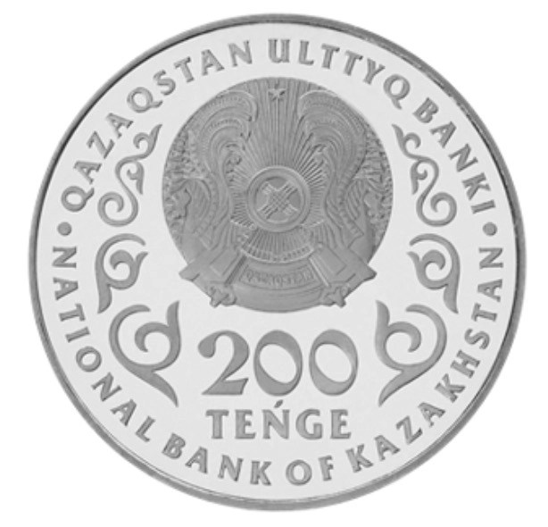 На аверсе в центральной части изображён Государственный герб Республики Казахстан. По окружности монеты идёт надпись на казахском и английском языках: «QAZAQSTAN ULTTYQ BANKI» / «NATIONAL BANK OF KAZAKHSTAN» («НАЦИОНАЛЬНЫЙ БАНК КАЗАХСТАНА»). В нижней части указан номинал — 200 TEŃGE (200 ТЕНГЕ). Композицию украшают национальные орнаментальные элементы.
