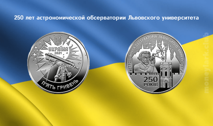 Монета Украины «250 лет астрономической обсерватории Львовского университета»